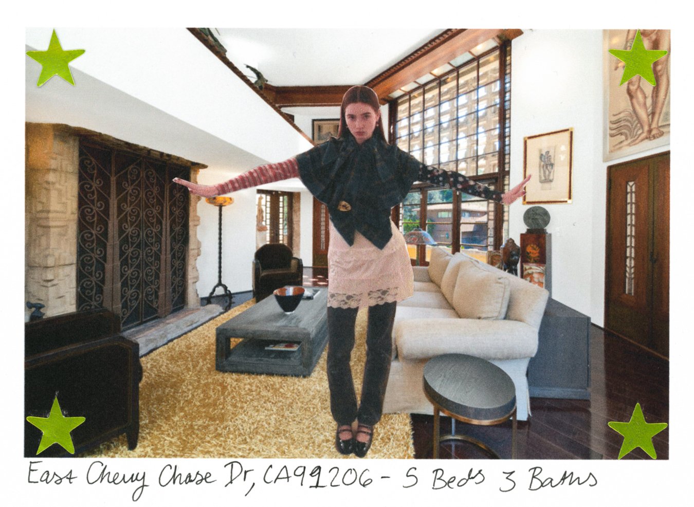 Surveying Slick Sights (13/60), Screenshot of online real estate listing, Foil stars and Ink, 2023